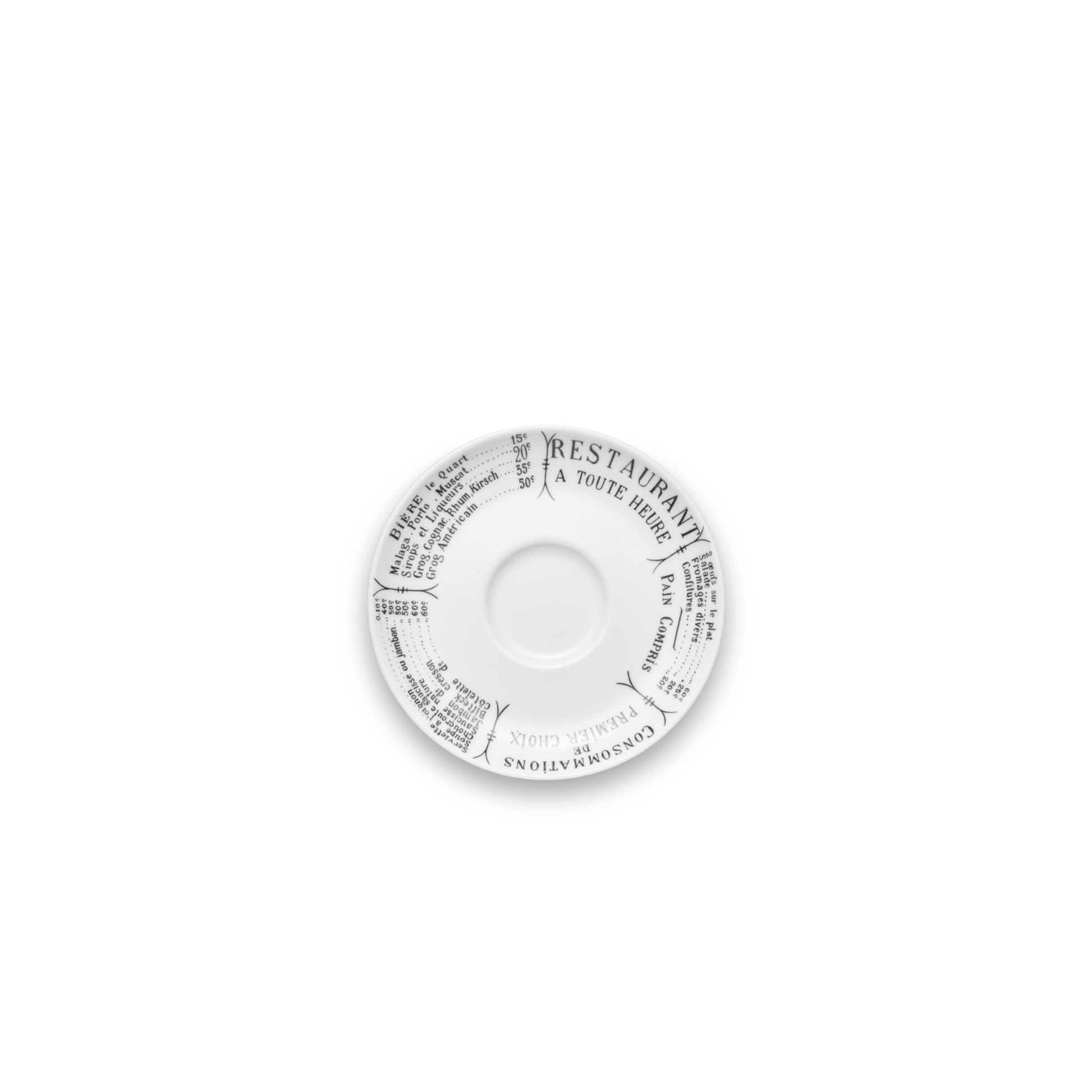 Collection Brasserie transports you to the cafes of Paris where time seems to stand still as you watch the world go by. Made from the finest French porcelain and decorated with vintage French menus, Pillivuyt's Brasserie Saucers are the perfect addition to your dishware collection.